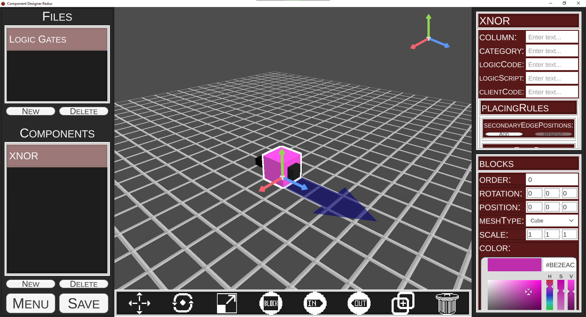 Component Designer Redux is a mod development tool made specifically for Logic World, a digital logic simulator made by Mouse Hat Games.